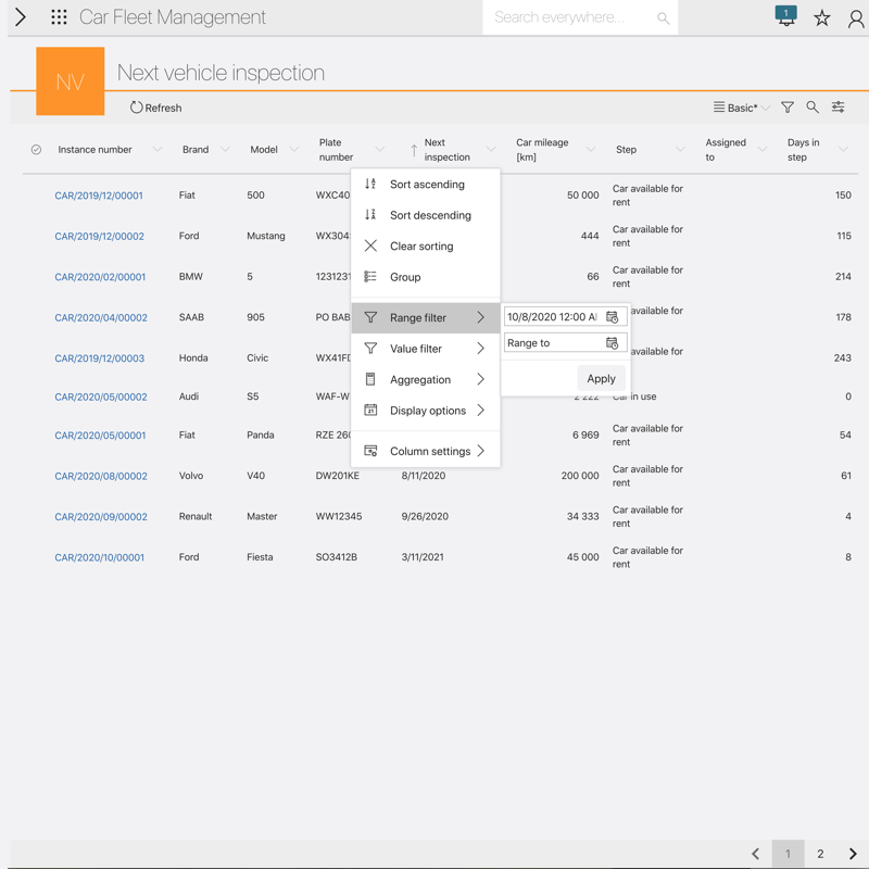 • Next vehicle inspection – a list of cars sorted by date of the next technical inspection.