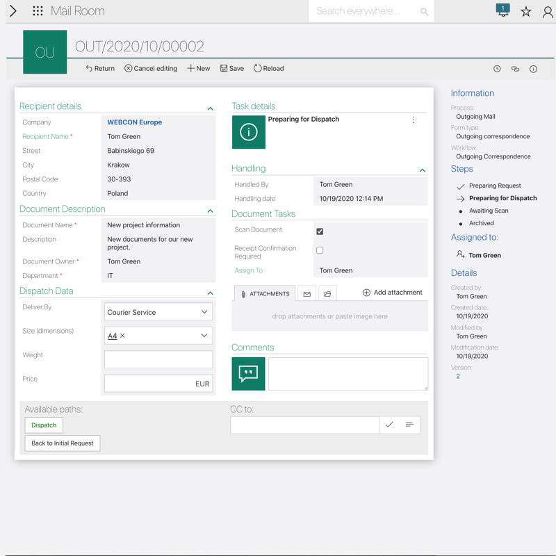 Manage physical mail that comes in – and order outgoing mail to be sent out.